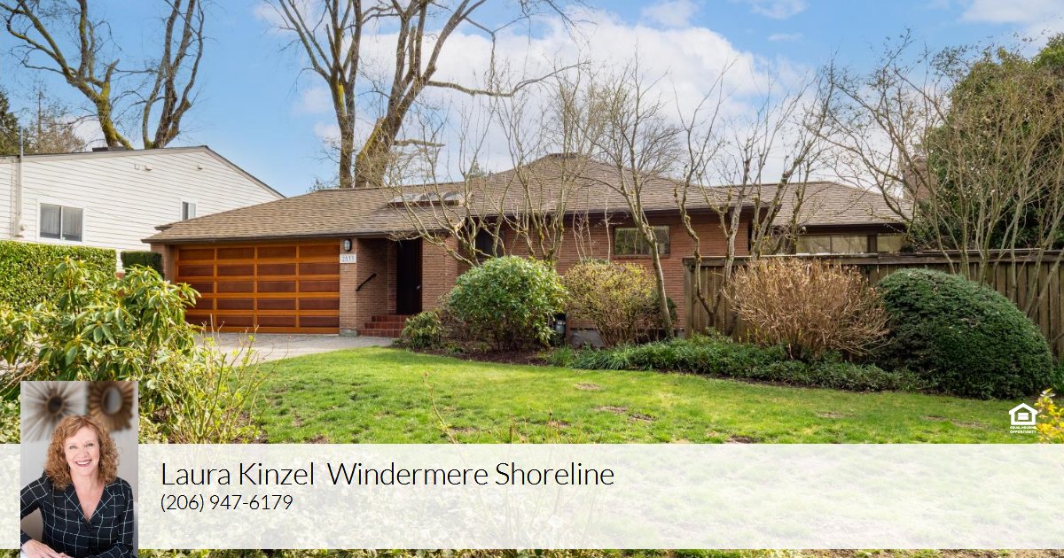Nestled on a quiet street, where Wedgwood meets Ravenna, and just blocks from Dahl playfield, sits a 1949 beauty with surprises around every corner. Classic mid-century style greets you with tiled entry and natural elements, architecturally interesting ceiling lines and skylights. Experience huge and airy living room with vaulted ceilings, newly refinished hardwood floors, walls of windows, gorgeous fireplace and dining area with access to sunny and expansive deck. Flooded with natural light, & with easy access to stunning outdoor spaces, you’ll want to spend every moment here! Move through to kitchen area, where you’ll find an efficient layout with miles of butcher block countertops for baking or hosting. Plus, a hidden pantry and a desk! Informal dining or family room features built in sideboard/storage and opens to expansive yard. Primary bedroom boasts lovely built-ins and a full bathroom. Lower level is light, bright and full of delights! First, notice the stunning, refinished parquet flooring. Pure art beneath your feet! Sunny and charming family room has view of verdant yard and a cozy fireplace. Four bedrooms on this level! Including one with built in bunks and one with a separate entrance to the backyard. Two full bathrooms, with marble floors and countertops. Laundry room too! Giant 12,000 sq. ft. lot features huge, multi-level deck, inset hot tub, & tons of garden space! Come and be delighted by this unique home!