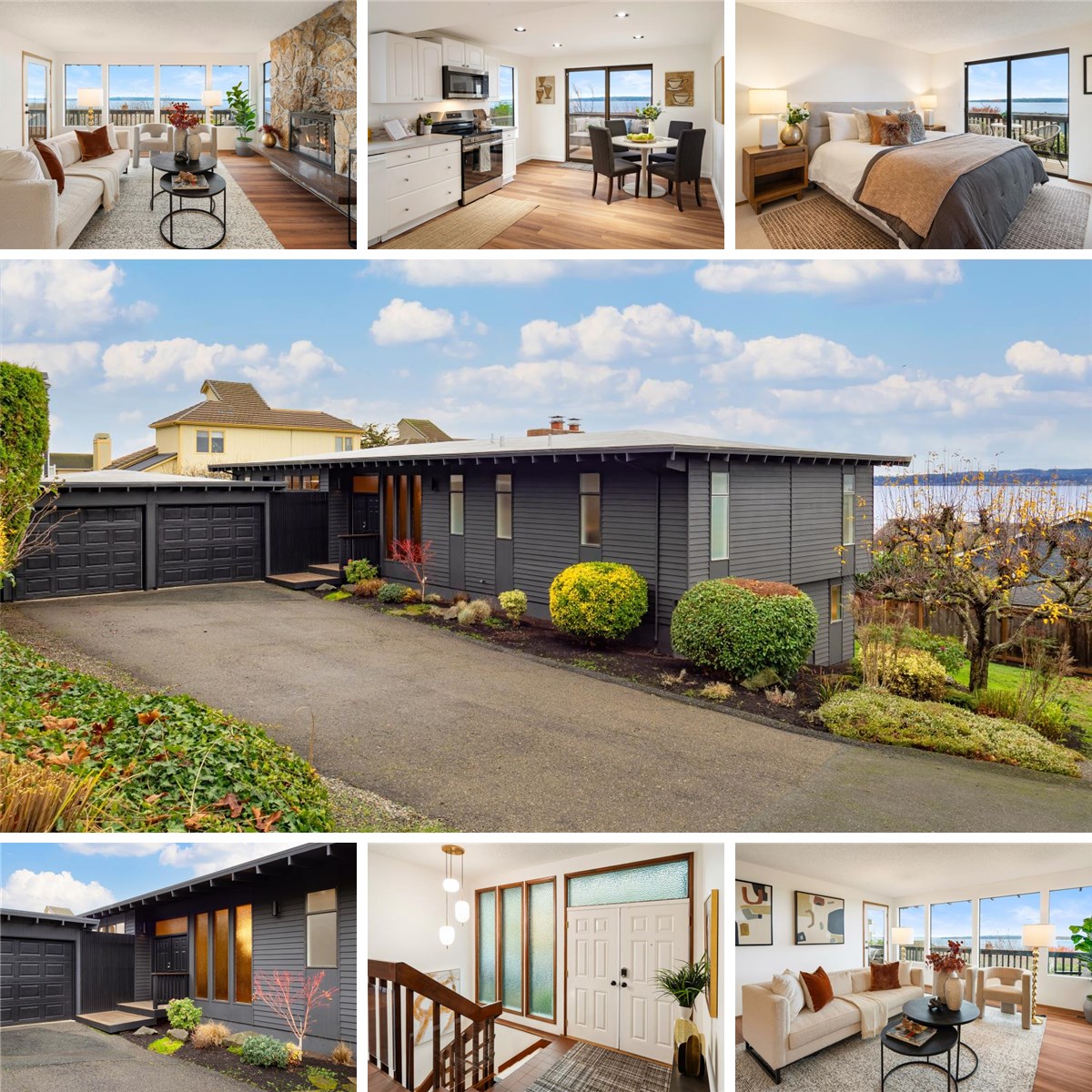 Custom-built & first time on market! Preserved original craftsmanship with stone fireplace in the formal living room and adjacent dining room. Thoughtful modern updates throughout. 3 main level bedrooms, including a primary that boasts a massive changing room/closet. Lower level has huge rec room, bedroom, bath, office, shop & luxe sauna. Walls of west-facing windows & expansive decks frame sweeping panoramas of Puget Sound and the Olympic Mountains, with vivid sunsets, & the seasonal passage of migrating orcas. Set on a large, peaceful, private lot with mature landscaping & spacious grounds, including rare deeded 1/6 beach rights to the sand-and-driftwood beach just across the street. Welcome home!
