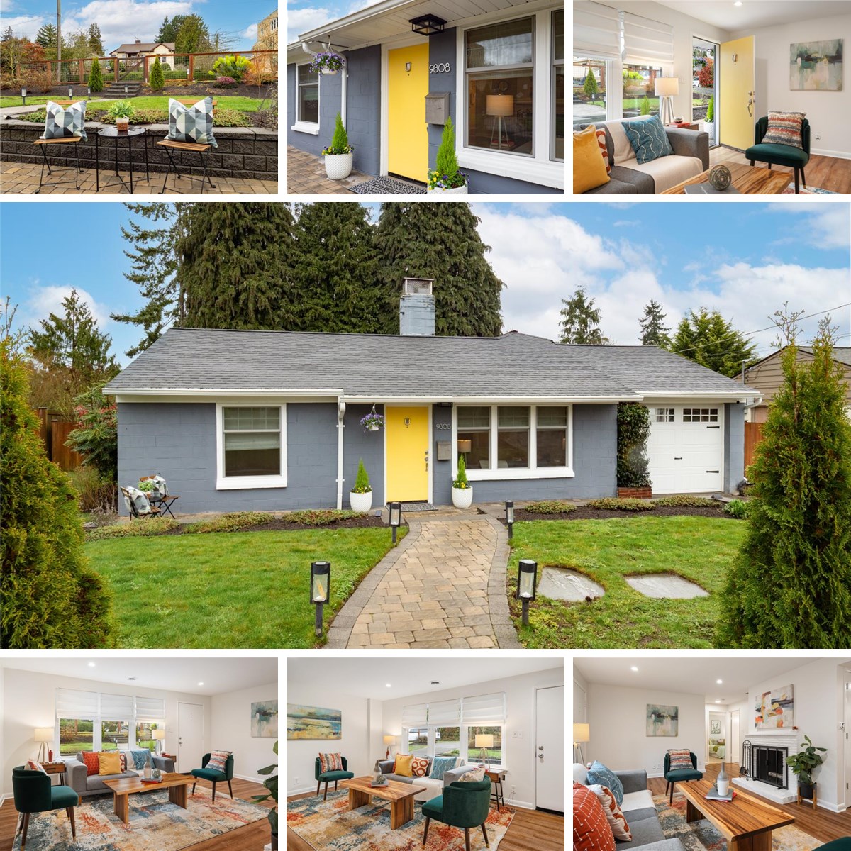 Fall in love with this adorable Greenwood rambler, set on an impressively sized lot! Thoughtfully updated & lives larger than its sq ft thanks to a smart, well-designed floorplan. The sunny west-facing front terrace leads to a bright & open interior with LVP floors, fresh paint, large windows & cozy wood-burning fireplace. Kitchen features Stainless Steel appliances, quartz counters & pantry. Dining area with serving buffet flows to a covered patio, creating the perfect spot to savor meals and outdoor moments all year round. Primary suite offers dual closets with custom organizers & newer ¾ bath with hex tile floors, glass walk-in shower & quartz vanity. Two additional bedrooms share a nicely updated full bath. Large finished attic provides abundant storage. Updates include copper plumbing, newer windows & updated electrical panel. Enjoy outdoor living year-round with a spacious covered patio & level fully fenced yard with mature trees - ideal for gardening, pets & play. 1-car garage + driveway & ample street parking. Located in a friendly, walkable neighborhood near dining, coffee, Trader Joe’s & Greenwood Park, with easy access to Green Lake, Northgate light rail, bus lines & more. Peaceful, private & connected - welcome home!